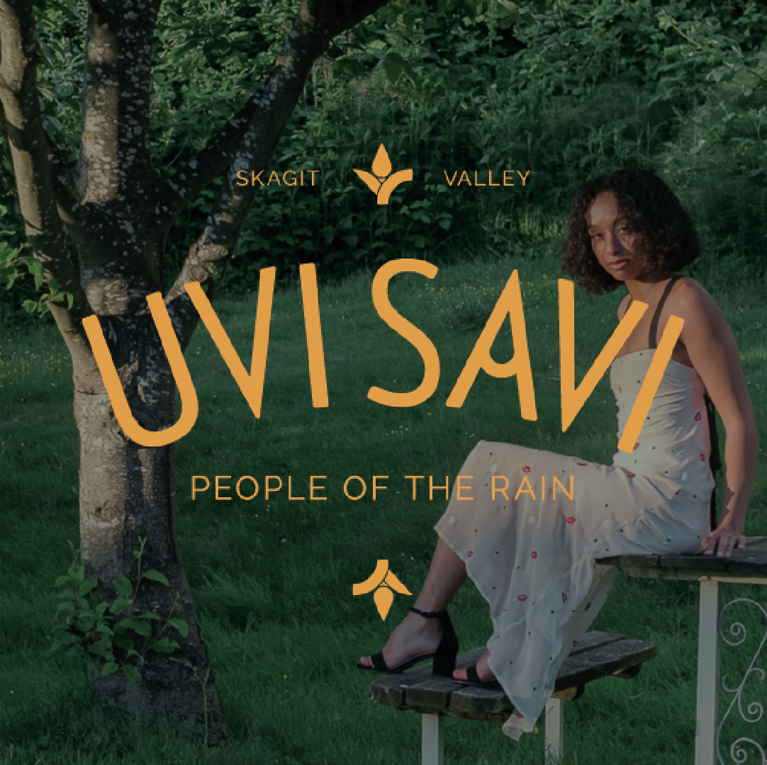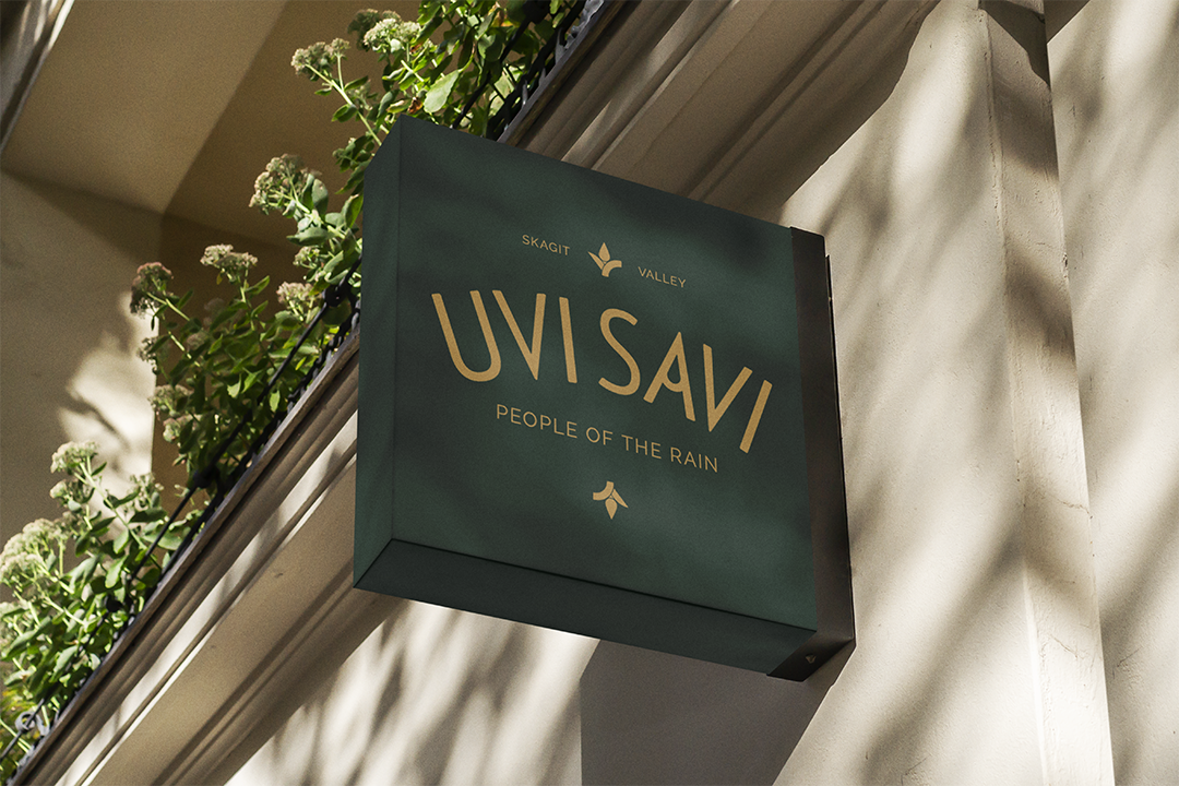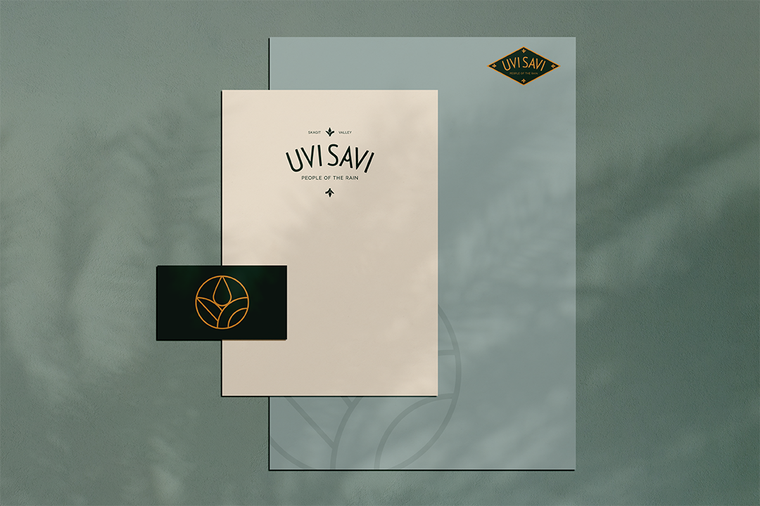 The raindrop represents the Pacific Northwest and the direct translation of the name Uvi Savi, “People of the Rain”.